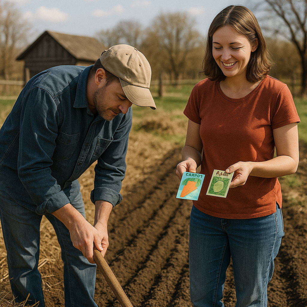Привет, друзья! Сегодня я решила сделать что-то совершенно новое — посадить огород. Да-да, вы не ослышались! Раньше я только полола грядки у родителей, но теперь, на нашем хуторе в столетнем доме, все будет по-другому. Витя, мой верный помощник, уже ждал меня с пакетиками семян. «Лена, сегодня сажаем морковь, редиску, свеклу и салат!» — объявил он, как капитан перед плаванием. Я кивнула, хотя внутри все переворачивалось от волнения: а вдруг ничего не взойдет?