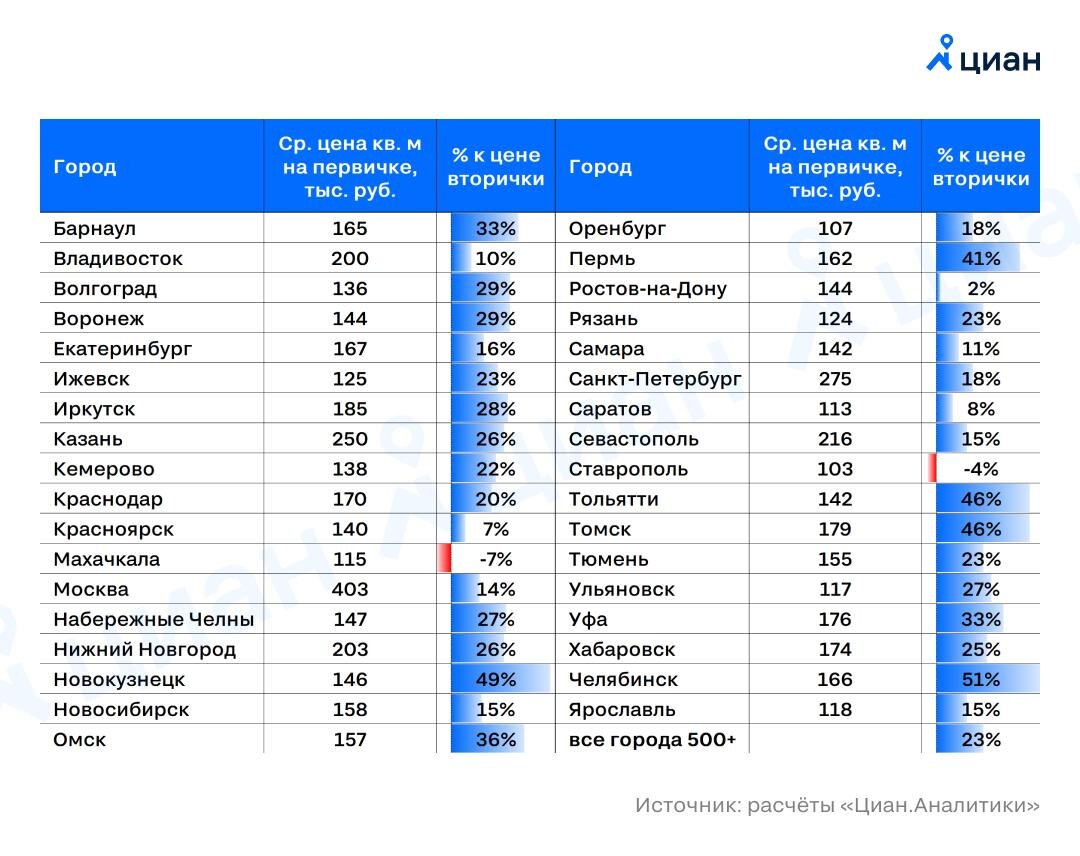 Данные озвучили представители «ЦИАН для Профи». Средняя цена квартиры на первичном рынке в Волгограде сейчас составляет порядка 136 тысяч рублей за «квадарт». Это на 29% дороже, если отказаться от идеи покупать жилье на вторичном рынке. Именно такую разницу заметили авторы исследования. Здесь говорят, что за последние 15 лет рынок жилья трансформировался до обратного соотношения. Теперь купить квартиру еще на стадии строительства дома однозначно стало на четверть дороже.
