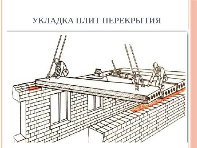 Особенности работ: Все виды железобетонных плит допускается монтировать на фундамент или несущие стены из кирпича, бетона, газобетона и других крупноформатных блоков. При этом стоит учитывать, что «коробку» из стеновых материалов с низкими показателями плотности (пеноблока, газоблока, керамзитобетона, полистиролбетон) необходимо дополнительно усилить армопоясом.