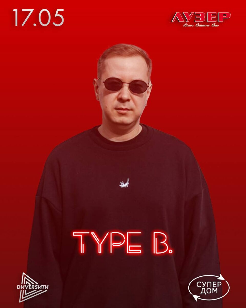 DИVЁRSИTИ & MAXIM GOLUBINSKIY B-DAY | DANCE NOW 17 мая @ Лузер Бар Лузер (Супер-дом soon) станет местом, где сойдутся энергия, музыка и непредсказуемость. Главные причины быть там: Хэдлайнеры: Natali F, Outsider и Type B. Ну и конечно DИVЁRSИTИ – разные звучания, одна безупречная вечеринка. Музыка: глубокий электронный звук, ритмы, под которые невозможно стоять на месте, и атмосфера, где стираются границы между диджеем и танцполом. LINE UP: ETMAN K ILDZHIEV Phantom Driver Ari.Zona Type B. Natali F b2b Outsider Nadya Han b2b Maxim Golubinskiy (b-day set) Только в эту субботу выпадет шанс оказаться в эпицентре. Упустите – и следующий повод будет лишь через год 🎫 Вход свободный Dress code: свобода самовыражения 📆 17 мая, в 19:00 📍Новокузнецкая ул., 24, стр. 2. Метро Павелецкая
