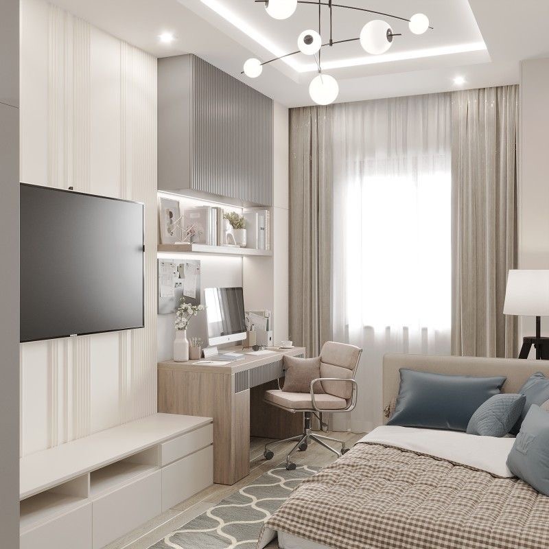 Когда у ребёнка наконец появляется свой уголок, хочется сделать его не только милым, но и функциональным: чтобы было где спать, учиться и отдыхать. А если комната маленькая — начинается квест: «Как туда уместить всё и не потерять ощущение простора?» Спокойно! Даже в скромных метрах можно создать комфортное, стильное и современное пространство для школьника. Главное — подходить с умом (и немного фантазии). Вместо стандартной кровати выбирай модель с ящиками или выдвижными коробами — туда удобно убирать постельное бельё, сезонные вещи или игрушки. А если потолки позволяют — высокая кровать-чердак освободит место снизу для стола или зоны хранения. 👉 Совет: выбирай лаконичные модели без лишнего декора — они растут вместе с ребёнком. Рабочее место должно быть светлым, удобным и тихим. Ставь стол ближе к окну — естественный свет лучше для глаз. Даже компактный стол шириной 80–100 см с навесной полкой над ним и тумбой сбоку — уже идеальный вариант. 👉 Важно: лампа с нейтральным светом, уд