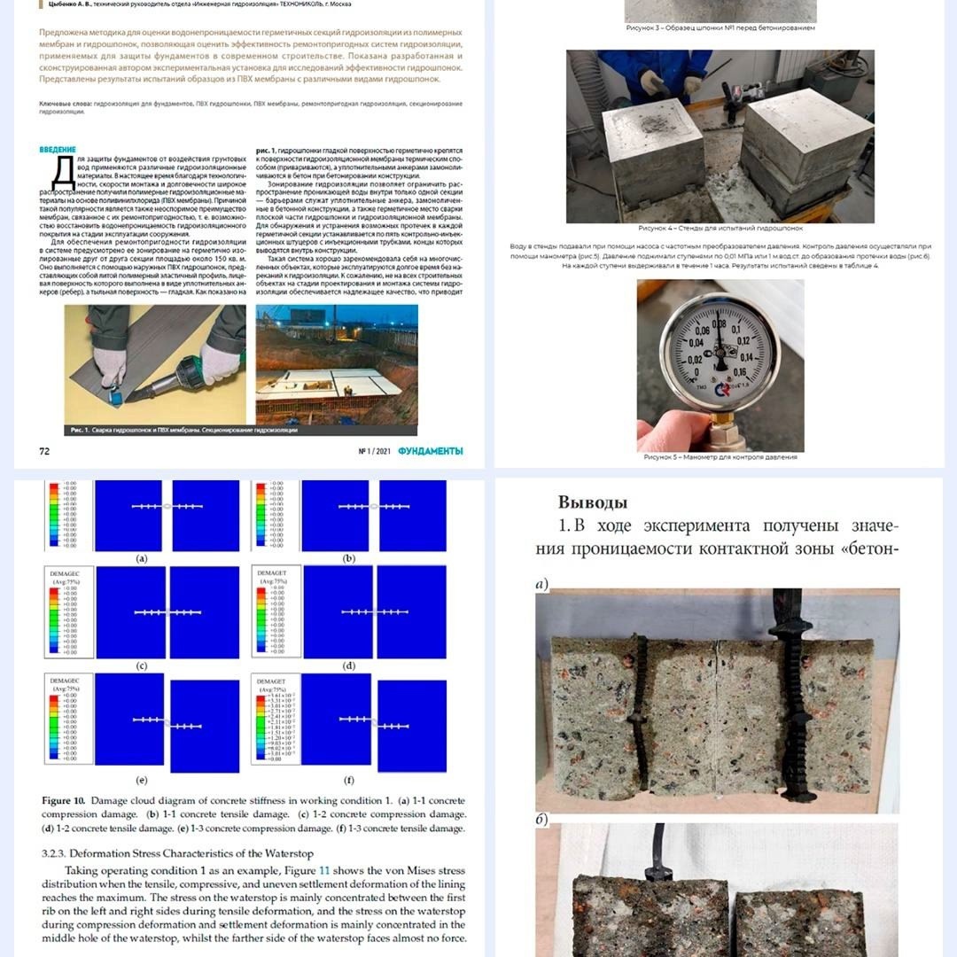 4. В четвертом исследовании (на английском) изучали влияние адгезии гидрошпонки к бетону на водонепроницаемость узла и оптимальные размеры компенсатора в тоннеле.