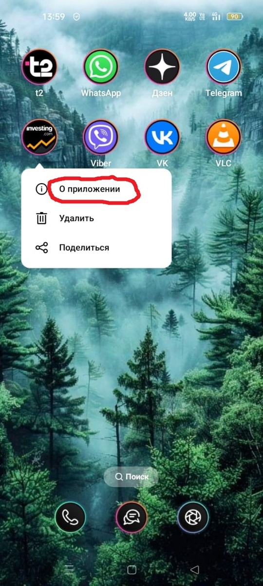 Итак, продолжу. Меня сильно раздражала назойливая реклама в приложениях, особенно в последнее время, но постоянно отключать смартфон тоже не выход — некоторые уведомления мне действительно важны. Однажды окончательно достало следующее: чтобы зайти в любимое приложение Investing.com, где я отслеживаю новости и котировки, мне сначала приходится пролистывать целую серию рекламных объявлений и новостей как только я активировал приложение. Стал разбираться подробнее как мне избавиться от этой гадости. Оказалось, всё просто: если нажать на иконку приложения и подержать её какое-то время, открывается следующее меню: