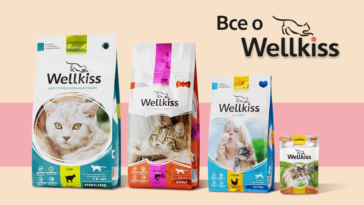 Готовые корма можно назвать оптимальным ежедневным питанием для кошек. Такие корма полностью сбалансированы по составу, обогащены всеми необходимыми витаминами и минералами. В качестве ежедневного рациона вы можете выбрать для своей кошки сухой или влажный корм Wellkiss (а еще их можно сочетать). Немного расскажем о данных кормах подробнее. Продукция Wellkiss относится к премиум и супер-премиум-классу. Основным ингредиентом является мясо. Ряд рационов содержит злаки (в допустимых количествах), которые благотворно влияют на работу желудочно-кишечного тракта любимца. В кормах также содержатся углеводы, которые насыщают организм энергией. Витамины помогают укреплять иммунитет. Важно отметить, что все рационы Wellkiss содержат таурин, очень важный для кошек, который, как известно, не синтезируется их организмом самостоятельно. В ассортименте Wellkiss — сухие и влажные корма для взрослых кошек, котят, пожилых питомцев, кастрированных и стерилизованных котиков и кошечек. Сухие корма для взро