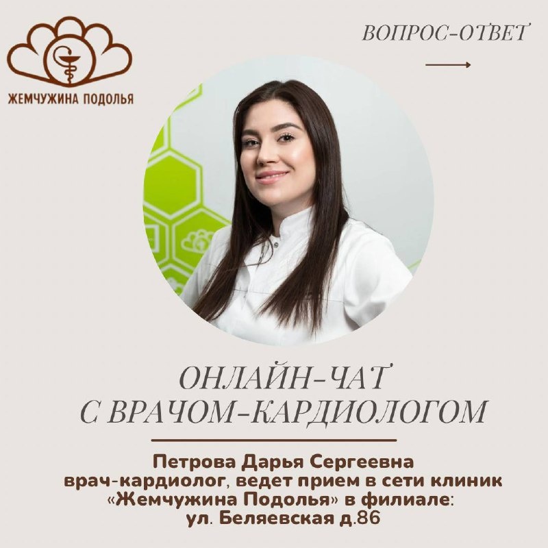 📌 Сегодня у вас есть возможность в формате онлайн-чата получить консультацию Петровой Дарьи Сергеевны врача-кардиолога, ведет прием в сети клиник «Жемчужина Подолья» в филиале: ул. Беляевская д.86 ✅ Вы можете задать вопросы в комментариях, связанные с такими проблемами, как хроническая сердечная недостаточность, гипертоническая болезнь, аритмия, боли в грудной клетке, повышенное и пониженное давление. ⏬ Пишите ваши вопросы в комментариях под этой публикацией до 10:00 19мая. Врач ответит на них в видео-и аудиоформате.