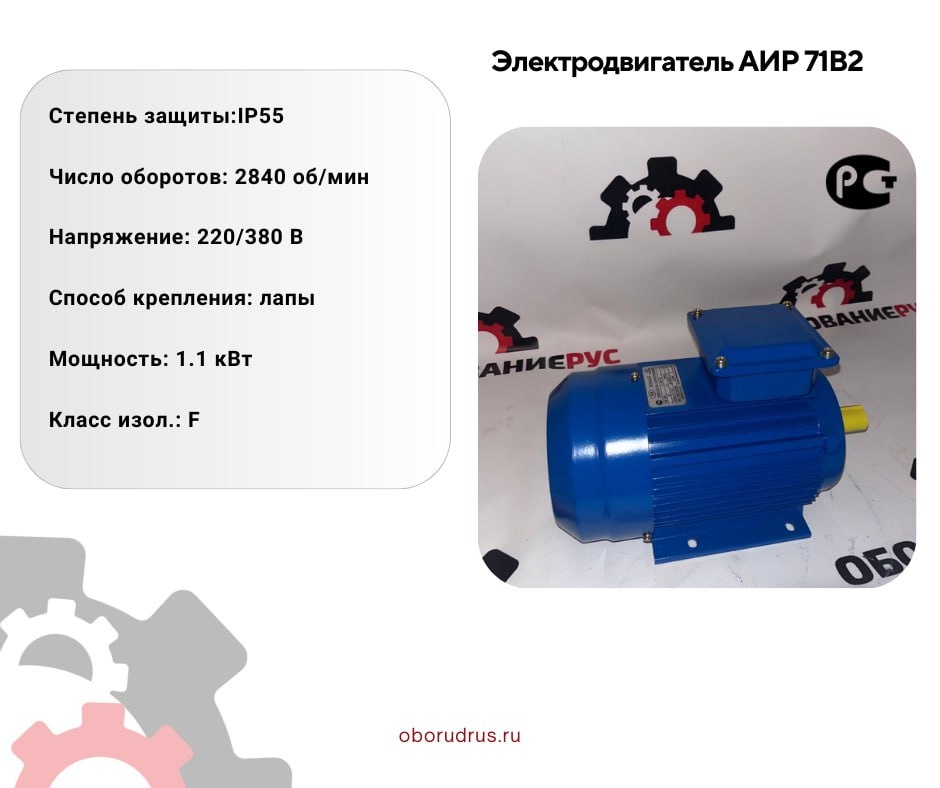 💡 У нас можно купить электродвигатель АИР71B2, а также подобрать аналог из большого ассортимента.