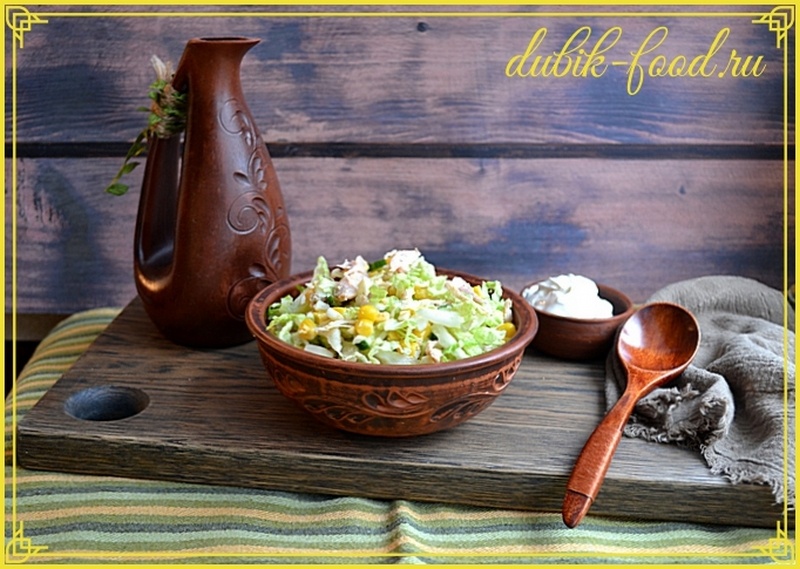 Простой и вкусный салат с курицей и капустой разнообразит любое повседневное меню! В зимнее время можно использовать пекинскую, а в летнее - раннюю капусту. Ингредиенты Способ приготовления Капусту нашинковать тонко и положить в салатник. Посолить и слегка пожать ( пекинской не касается ). Из банки с кукурузой слить жидкость. Отправить кукурузу к капусте. Курочку нарезать или просто разобрать на волокна. Поперчить, заправить сметаной ( йогуртом, майонезом, растительным маслом ), перемешать. ПРИЯТНОГО АППЕТИТА!!!