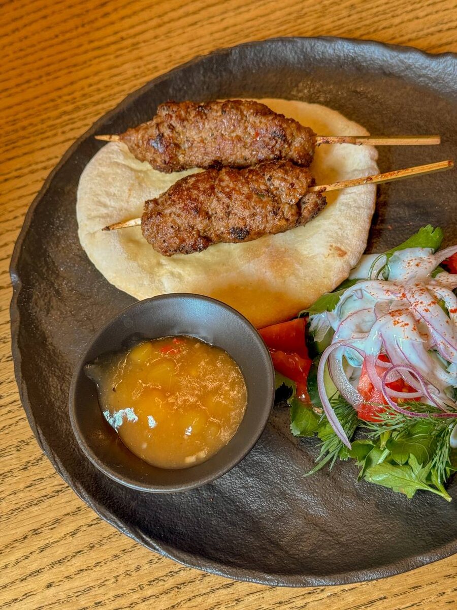 Кебаб из говядины с манговым чатни — сочное, ароматное блюдо с яркими восточными нотками и легкой фруктовой кислинкой