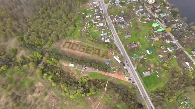 Александр Дрозденко и волонтеры у мемориала «Невский порог» высадили более 400 елей, которые образуют геоглиф «ПОБЕДА». На территории Ивановского пятачка в Отрадном прошла акция «Сад памяти». Губернатор Александр Дрозденко и волонтеры у мемориала «Невский порог» высадили более 400 елей, которые образуют геоглиф «ПОБЕДА». Пока деревья еще маленькие, не больше метра каждое, но за ними будут хорошо ухаживать, чтобы они росли быстрее. Мероприятия международной акции «Сад памяти» проходят во всех районах Ленобласти уже несколько лет подряд. Идет благоустройство памятников и озеленение мемориальных зон. Задача — высадить 27 млн деревьев в память о каждом погибшем в годы Великой Отечественной войны. А вот так выглядит геоглиф с высоты птичьего полета. Для этих кадров в небо был поднят квадрокоптер.