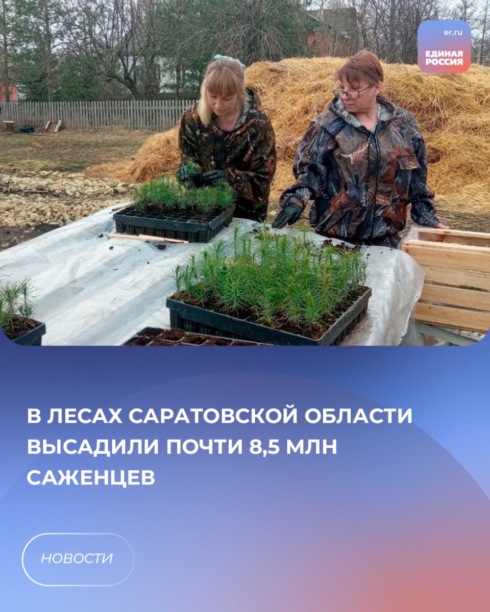✅Губернатор, секретарь саратовского реготделения партии «Единая Россия» Роман Бусаргин рассказал, что работы ведутся на территории всех 25 лесничеств региона. 💬«Высажено 2150 из запланированных 2200 гектаров. Самые масштабные работы по лесовосстановлению проведены на территории 6 районов области: Вольский - 516,8 га; Ровенский - 282,7 га; Калининский - 185 га; Екатериновский - 181,8 га; Лысогорский - 165,8 га; Базарно-Карабулакский - 147,3 га. Для посадки используют сеянцы из наших питомников. Для того чтобы обеспечить регион собственным посадочным материалом, активно развиваем профильные хозяйства. Сейчас функционирует 12 питомников общей площадью 126 га. В начале года дополнительно выделяли 30 млн рублей на проведение посадочных мероприятий. Планируется, что в этом году новые зеленые насаждения появятся на площади не менее 4 тысяч гектаров», - отметил Бусаргин.