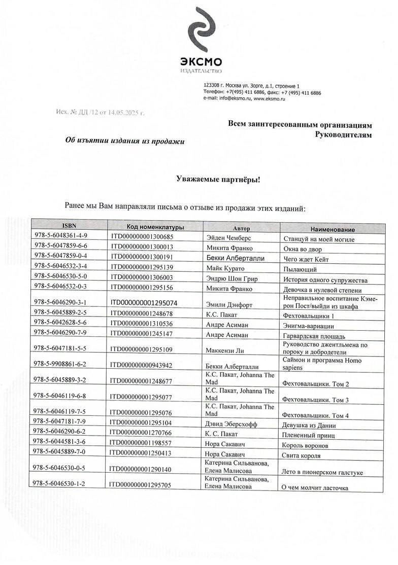 Несмотря на то, что многие книги из этого списка невозможно было найти и раньше, сейчас постепенно с озона и авито исчезают остатки. В «Читай Городе» мне сегодня уже не продали «Замри» Нины Лакур, потому что её сняли с продажи (хотя её даже нет в списке, но, по словам продавцов, они в принципе сейчас убирают с продажи все книги индивидуума и попкорнов). «Дарий Великий не в порядке» ещё был на балансе, так что я его заполучила. Одновременно с этим огромная наценка у перекупов на книги Коли Степаняна «Где» и «Бражники и блудницы», которые днём с огнём сейчас не сыщешь. Последние крохи обитают на алибе и в независимых книжных. Карточка на озоне «Выйди из шкафа» Оли Птицевой исчезла у меня на глазах после заказа, так что я без понятия придёт ли в итоге книга.