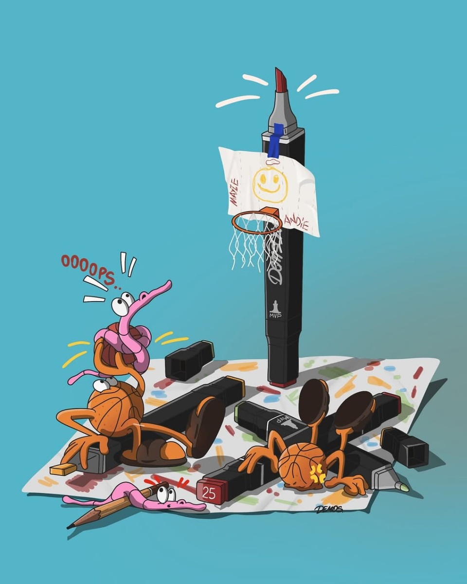 Баскетбол, червяки и маркеры в арте Виталия Демоса: