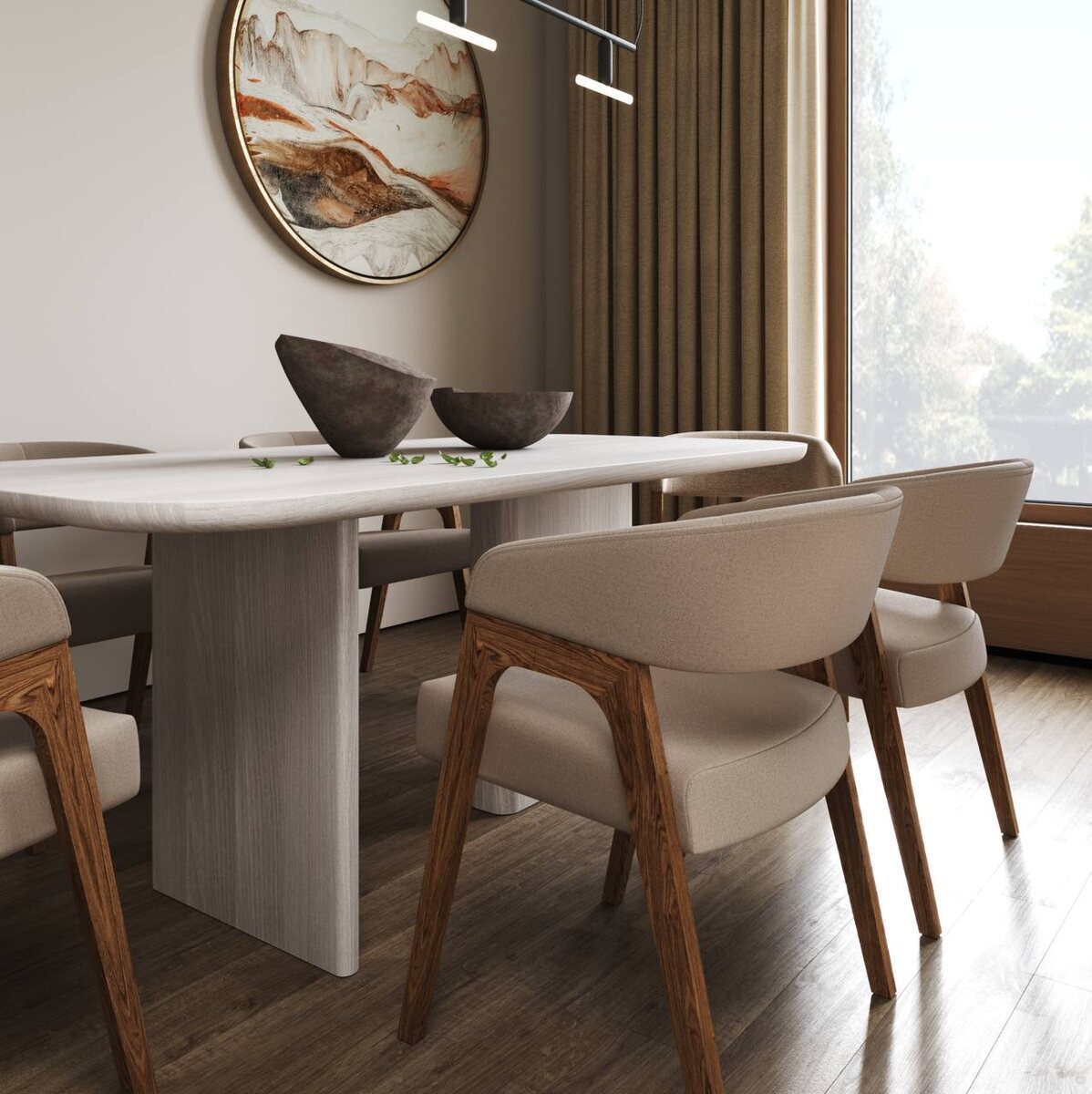 Сочетание натурального дерева и текстиля создают гармонию в любом помещении, а элегантные линии визуально делают комнату более легкой и просторной.