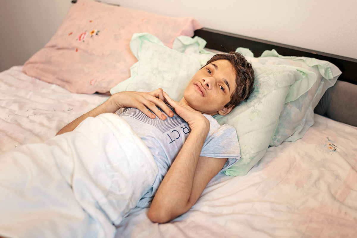 Сейчас, когда вы это читаете — Миша со своими хрупкими костями оказался на той самой развилке, когда решается его судьба. И выбор: между «остаться лежачим больным» и «встать на ноги». Буквально встать. Представляете, слепой мальчик, который пролежал почти 5 лет, загипсованный в половину тела, сможет снова спустить ноги на пол и по стенке дойти до кухни, чтобы попить с мамой чай. Сможет сам выйти во двор, чтобы почувствовать летний воздух. Сможет стоять на своих двоих, когда к тебе приходит фотограф из фонда и принимать гостей, не лежа в гипсе. «НИКТО НАМ О РЕДКОМ ДИАГНОЗЕ НЕ ГОВОРИЛ» До 13 лет Миша еще ходил и о своем редком диагнозе ничего не знал. Ходил, правда, недалеко. В месяц малыш начал слепнуть и к подростковому возрасту уже совсем ничего не видел. Но не унывал и мог сам спуститься с крыльца, открыть калитку, отлично ориентировался в доме, играл на пианино (подбирал мелодии на слух), рос улыбчивым и любимым парнем. Вот только в школу не ходил: в Донецке ближайший интернат дл