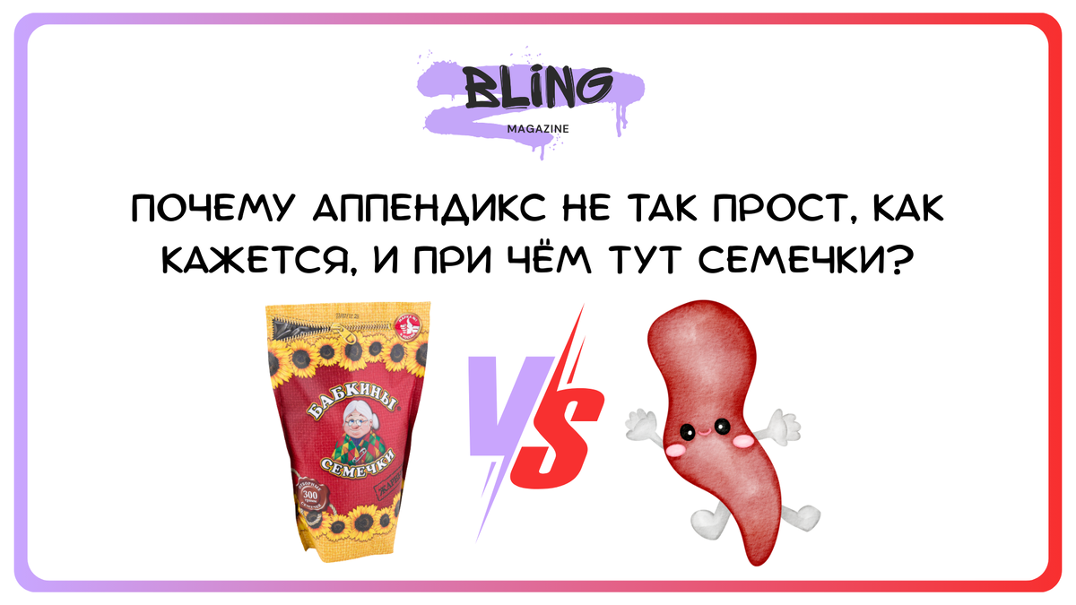 Аппендикс долгое время был органом загадкой, словно герой детектива: долгое время его считали бесполезным рудиментом эволюции, а потом вдруг «реабилитировали». Почему у нас детям запрещали грызть семечки? И правда ли, что в США раньше удаляли его новорождённым «на всякий случай»? Давайте разберёмся! Аппендикс - это червеобразный отросток слепой кишки длиной 5-15 см. Ещё в начале XX века его называли эволюционным пережитком, а в некоторых странах, например, в США и Германии даже практиковали профилактическое удаление у младенцев, чтобы «избавить их от будущих проблем». Но по русской традиции - «не стоит будить лихо, пока оно тихо». Так и аппендикс оказался совсем непрост. В 2007 году учёные обнаружили, что аппендикс - резервуар для полезных бактерий кишечника. После кишечных инфекций он помогает восстановить микрофлору. Также в его стенках содержится лимфоидная ткань, участвующая в иммунной защите, она играет важную роль он в детстве. Почему его всё же удаляют? Сейчас аппендикс удаляют