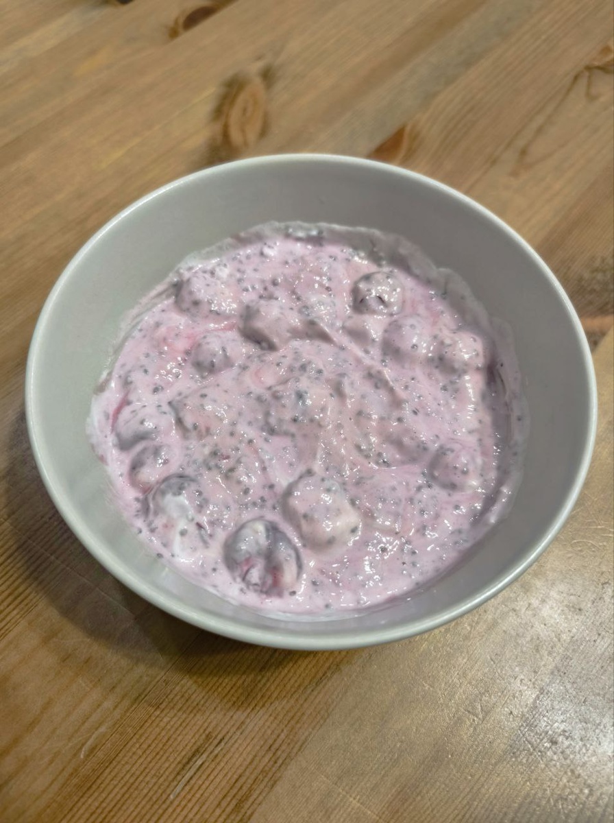 Греческий йогурт с вишней, протеином и семенами чиа. Кбжу на всю порцию: 233 ккал/24г белков/7г жиров/19г углеводов Можно добавить какао, орехи, любые ягоды или фрукты. У меня протеин bombbar со вкусом банан-манго, но больше понравился со вкусом крем-брюле. #завтрак #десерт