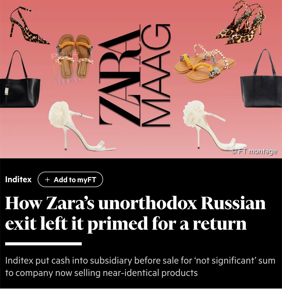 К тому же «дочка» Дахеров (Mixed R DMCC) создала новые бренды — Maag, Dub, Ecru и Vilet. А три основных поставщика Inditex стали также ведущими поставщиками. Многие из дизайнов новых российских брендов имеют сильное сходство с продукцией Zara и другими марками. Кроме того, Inditex вложил в российский бизнес 9,1 млрд рублей и 120 млн евро прямо перед уходом из страны. А первая рекламная кампания Maag была снята в том же месте, что и коллекция Zara — на Канарах. @retailrus