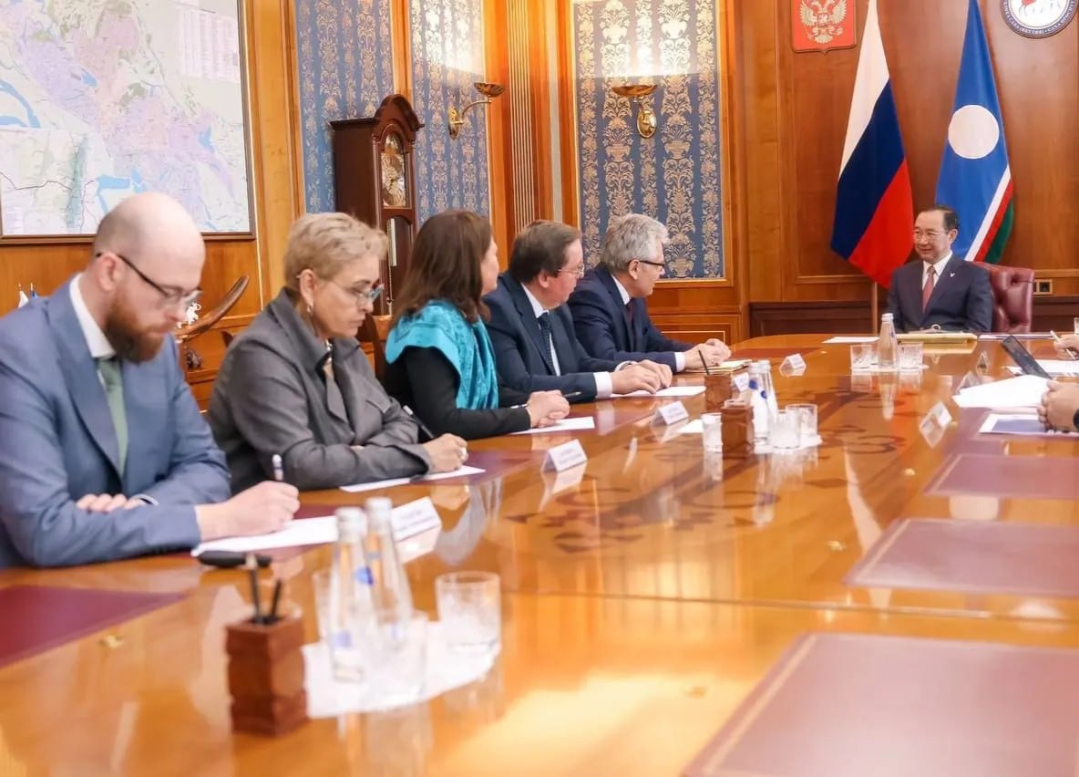 ⚡️ Якутия будет сотрудничать с национальным центром физики и математики в подготовке кадров В четверг, 15 мая, состоялась рабочая встреча главы Якутии Айсена Николаева с делегацией национального центра физики и математики во главе с научным руководителем, академиком РАН Александром Сергеевым. Встреча прошла в рамках проекта «Время науки», приуроченного к празднованию 80-летия атомной промышленности и направленного на решение задач технологического суверенитета России. Фото: Андрей Сорокин/ЯСИА @Якутия 24