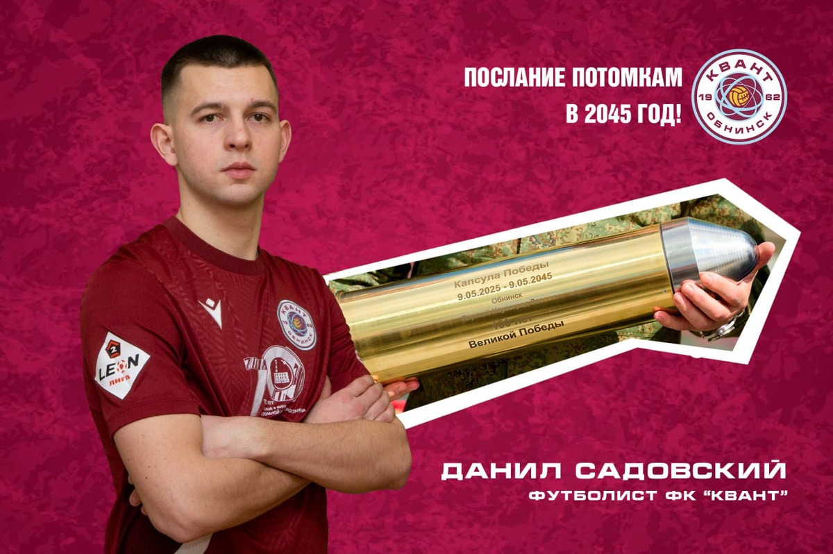 Данил Садовский желает потомкам не забывать мечтать! 🤗 Здравствуйте, дорогие друзья и жители Обнинска в 2045 году! Пишу это письмо, надеясь, что оно попадёт к вам в будущее и заставит вас улыбнуться и вспомнить о нашем времени. На данный момент я - игрок футбольного клуба «Квант». Думаю, вы до сих пор наблюдаете за нашей командой и нашими успехами. Надеюсь, вы продолжаете поддерживать команду и верите в неё так же, как и мы в наше время. Я надеюсь, что в 2045 году наш город стал ещё более современным, уютным и дружелюбным. Верю, что вы сохранили дух общности и поддержки, который был так важен для нас. И наконец, хочу напомнить вам о важности мечтаний. Надеюсь, вы не забываете мечтать, стремиться к новым вершинам и не боитесь идти за своими целями. Помните: всё великое когда-то начиналось с мечты. Садовский Данил, защитник футбольного клуба «Квант»