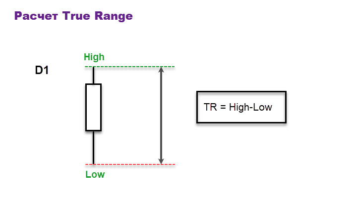 Поскольку обычно за единицу времени принимается один день, то можно сказать, что дневной True Range (TR) равен величине дневной свечи.