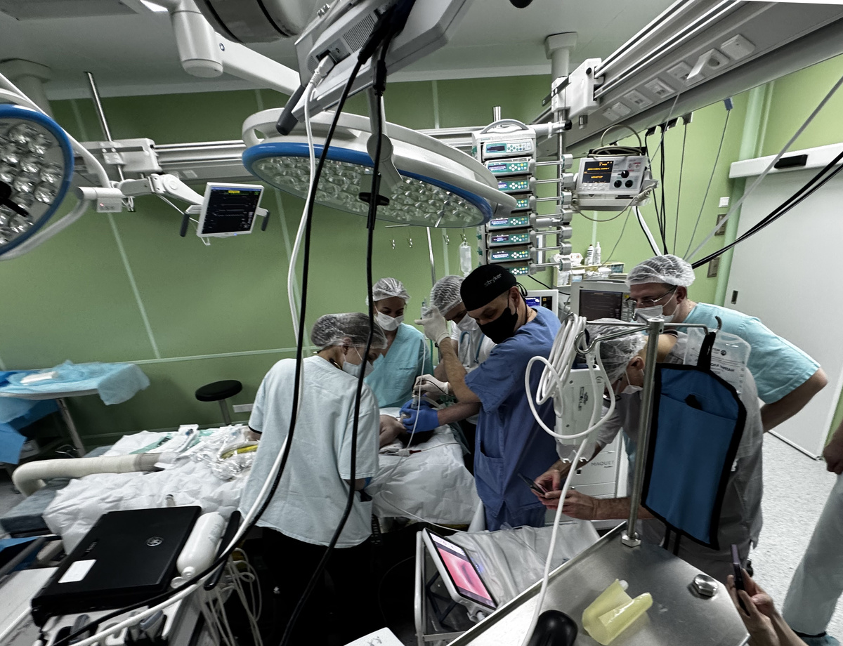 Операция длилась 2 часа и завершилась успешно. У 3-месячного мальчика из Карелии диагностировали врождённую аномалию сосудов. У ребенка сформировались две дуги аорты, которые окружили трахею и пищевод, что вызвало проблемы с дыханием, рассказали врачи Педиатрического университета. Такая патология носит название «полное сосудистое кольцо» или слинг и требует хирургической коррекции. Кроме того, медики подозревали, что длительное сжатие трахеи могло привести к её деформации и сужению. «Это значило бы, что ребёнку необходимо сложнейшее реконструктивное вмешательство — так называемая слайд-пластика. Цель такой операции — восстановление нормального диаметра трахеи которое достигается путем удаления суженной части и последующего соединения оставшихся сегментов», — рассказали врачи. На начальном этапе операции врачи выполнили исследование трахеи, которое показало, что патологии нет.