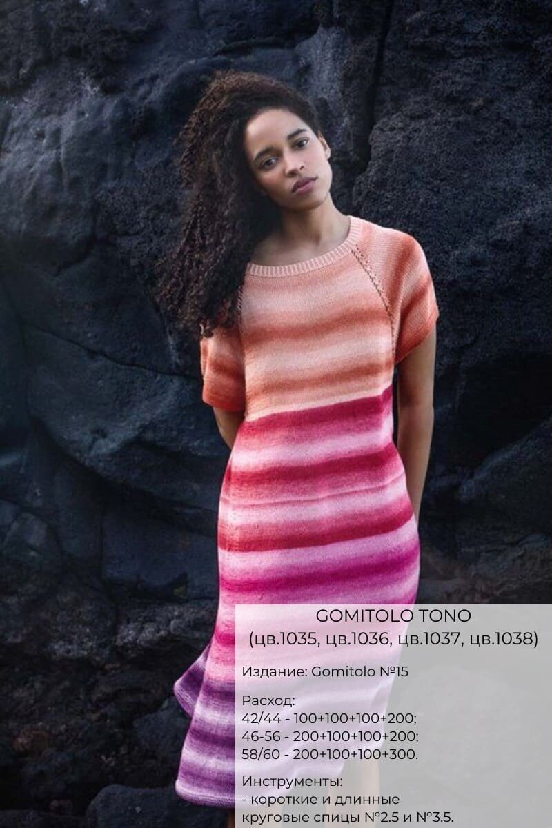 Всего в журнале Gomitolo №15 представлено 30 моделей. Мы покажем большую часть из них. Разбили на несколько групп по пряже: Gomitolo Tono, Gomitolo Hippie, Gomitolo Mambo и Cotonella.