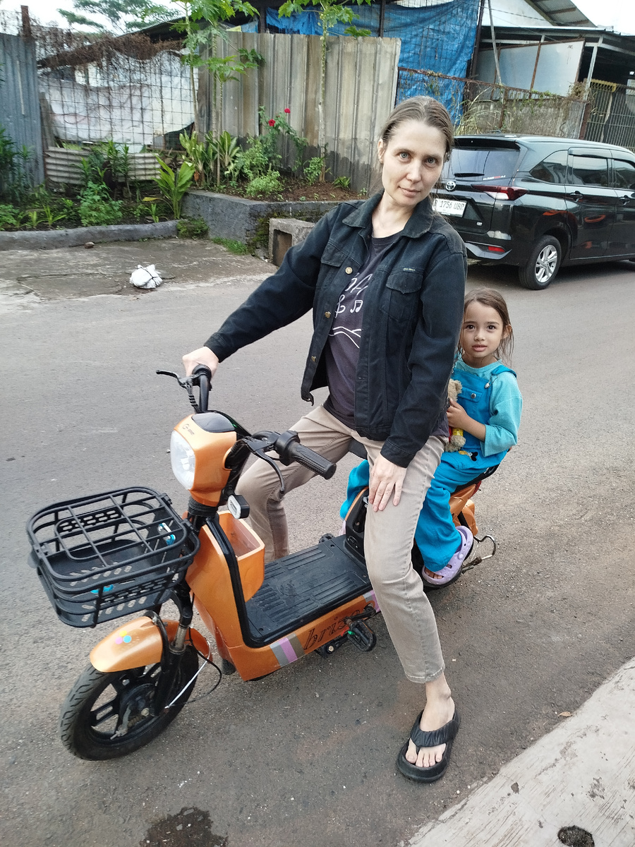 В четверг днëм приехал к дедушке друг на электровелике. Почему-то я сразу вспомнила, что давно хотела такой, а в виде знаков сначала открылся магазин по дороге в бассейн школы Амиры, потом недалеко от нас - напротив заправки, где мы заправляемся и часто снимаем деньги в банкомате. Но я не знала, какая мне нужна модель, цвет, и где взять 3500000 рупий сразу, чтобы осталось ещё и на покушать и оплатить все квитанции.