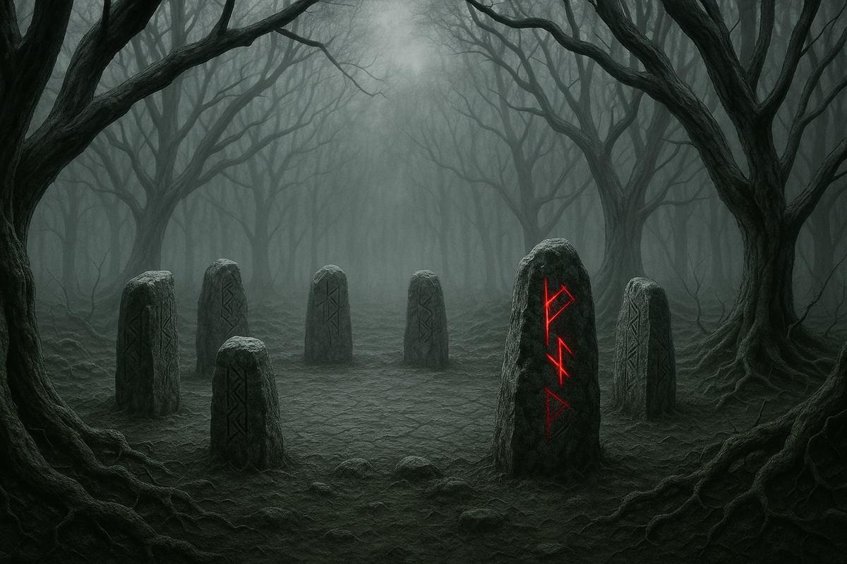 Круг камней чуть в стороне от тропы. Семь штук. Стертые, потрескавшиеся, расставленные идеальным кольцом не больше трёх метров в диаметре. Я не заметил его на пути туда и точно не сходил с тропы. На камнях были отметины… бледные угловатые символы, врезанные глубоко в поверхность.