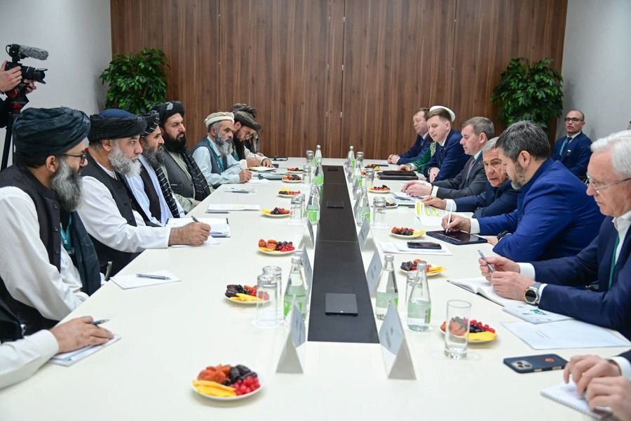 Раис Татарстана Рустам Минниханов встретился с заместителем Председателя Правительства Афганистана муллой Абдулом Гани Барадаром Встреча прошла на полях KazanForum-2025 в МВЦ «Казань Экспо», в ней также принял участие Муфтий Татарстана Камиль хазрат Самигуллин Участники встречи обсудили перспективы сотрудничества в ряде отраслей, включая сельское хозяйство, транспорт и сфера халяль. Также Рустам Минниханов отметил важность гуманитарного партнерства в научно-образовательной и культурной сферах По материалам пресс-службы Раиса РТ.