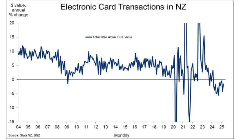 https://basechop.ru/wordpress/?p=42809 Совсем недавно крупнейшие банки, активно работающие в экономике Новой Зеландии, а именно BNZ и ANZ, прогнозировали, что после провала рост ВВП страны восстановится на уровне 2% г/г, что можно было бы считать устойчиво хорошим результатом. Такие темпы позволили бы РБНЗ снижать ставку постепенно, поскольку инфляция все еще высока, но, по всей видимости, реальность оказывается хуже, чем ожидалось. Данные по транзакциям по электронным картам, которые являются довольно надежным критерием потребительского спроса, показали нулевой рост в апреле, по сравнению с прошлым годом, и вовсе снижение на 0.3%, что говорит о том, что пока мало признаков подъема потребления. Миграция и туризм для экономики Новой Зеландии являются значимым фактором роста, и последние данные говорят о том, что и здесь наблюдается, не рост, а замедление – в марте количество туристов сократилось на 8.4% г/г. Жилищное строительство? С учетом сезонных колебаний производство бетона вырос