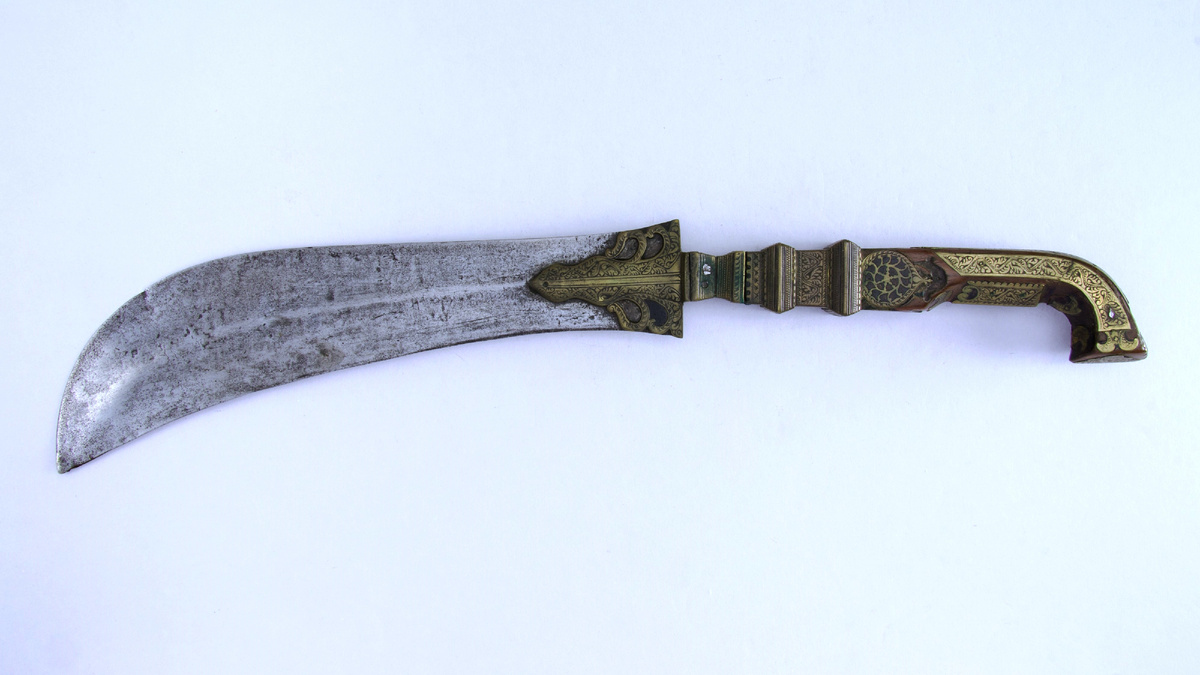 Металлический клинок с мощным, слегка загнутым остриём, тяжёлая деревянная рукоять с латунными вставками, и нечто едва заметное — след времени, осевший в порах дерева. Этот нож, сегодня покоящийся в витринах музеев, когда-то лежал у пояса мужчины, который с детства знал: оружие — это продолжение дома. Оно охраняет, служит, передаётся по наследству. Оно — ты сам.