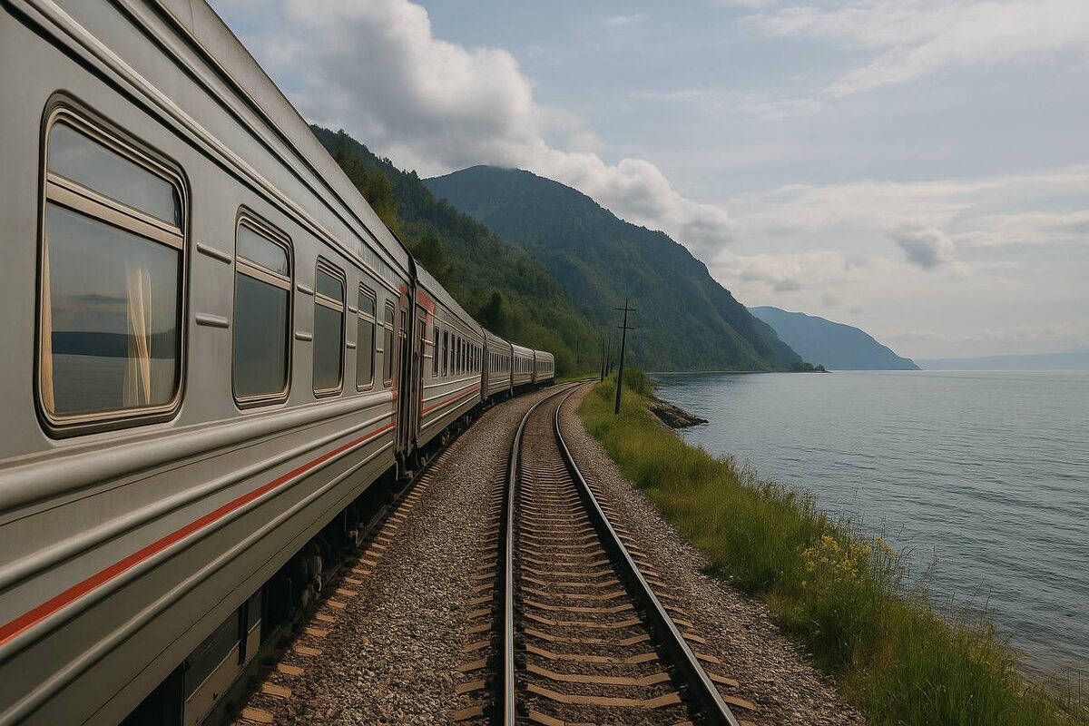 Иногда хочется, чтобы поезд шёл медленно. Не потому что ты устал, а потому что за окном — Байкал. И ты просто сидишь, смотришь, как отражается небо в воде, как скалы отбрасывают тень на берег, и как будто весь мир становится тише.