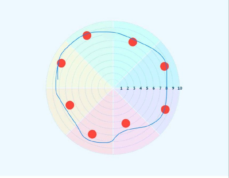 Сегодня я целый день в дороге, и немного грущу отказам и заморозке активности на тренинги в компаниях. никакого баланса 😂😂 Поэтому хочу с вами техникой поделиться, известной и очень классно подходящей, если вдруг вас что-то стало раздражать или не устраивать. Называется техника: Колесо жизненного баланса Жизнь представляет для нас бесконечные возможности. Возможности взять от жизни все с одной стороны, а с другой-бесконечность выбора-это серьезное препятствие. Метафора колеса отлично подходит для гармонизации жизни. Как вы видите на фото, колесо жизненного баланса представляет собой круг, поделённый равномерно на 8 секторов(секторов может быть и меньше, больше не рекомендую, так как в фокусе внимания идеально удерживать 7+- 2 объекта) Итак, В колесе жизненного баланса 8 секторов, каждый сектор из которых соответствует вашему приоритету/ потребности. Расставьте оценки вашей удовлетворённости внутри колеса от 1 до 10 в каждом секторе. Составьте своё колесо жизненного баланса.