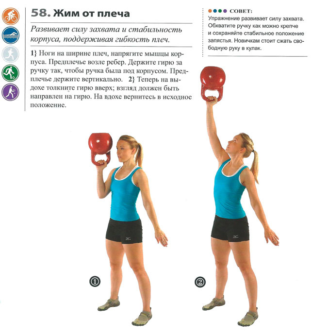 – Даже один жим гири в неделю положительно влияет на осанку и снижает риск травм плечевого пояса