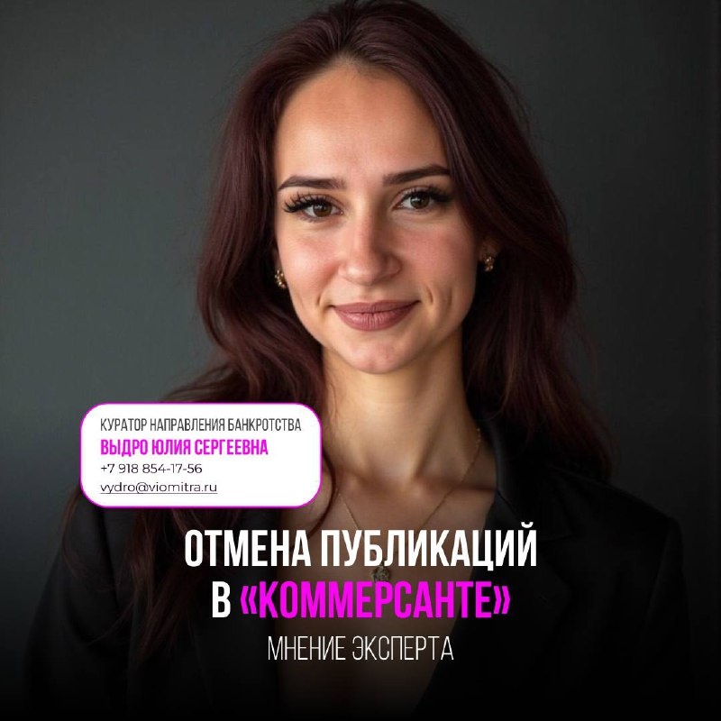✅ Эксперт VIOMITRA: об отмене обязательных публикаций в «Коммерсанте» 📌 Национальный союз профессионалов антикризисного управления направил в Минэкономразвития законопроект об отмене обязательных платных публикаций о банкротстве в «Коммерсанте». 🤝 Мы в VIOMITRA поддерживаем эту инициативу. Куратор направления BANKROT.VIOMITRA Юлия Выдро объясняет, почему отмена — верное решение, которого давно ждала сфера: Стоимость таких публикаций с 2025 года — 347,89 руб. за кв. см. Полный комплект сообщений по одной процедуре может обойтись в 100 000 рублей и выше. Эти затраты часто ложатся на арбитражного управляющего, особенно если у должника нет средств. Да, «Коммерсантъ» обеспечивает открытость, особенно для тех, кто не пользуется цифровыми ресурсами. Но и здесь давно есть альтернатива — участие через агентов. На практике публикации в газете давно утратили информативность: многие ограничиваются несколькими строчками, чтобы сэкономить — «Торги начаты» и «Ф. И. О. должника». Это формальнос