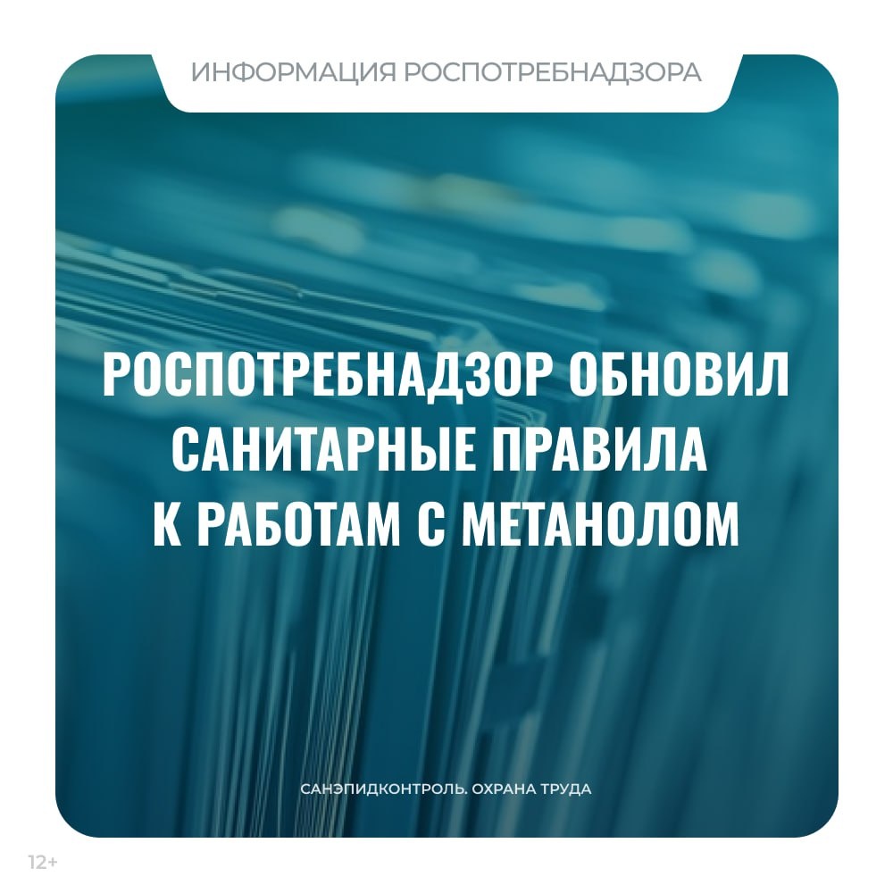 ☝️ Опубликовано постановление Главного государственного санитарного врача Российской Федерации от 27.03.2025 № 7 «Об утверждении санитарных правил СП 2.2.5.4116-25 "Санитарно-эпидемиологические требования к организации и проведению работ с метанолом"». Подробнее