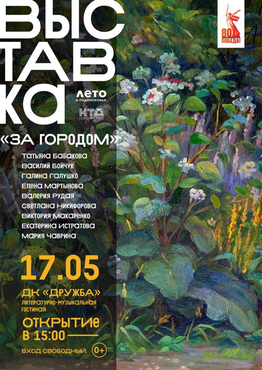 ✨ Открытие новой выставки "За городом" 🖼️Талантливые художники представят свои картины. Милые дачные сюжеты и трогательные пейзажи с русской красотой и самобытностью. 👉На выставке вы сможете пообщаться с самими художниками, узнать о их вдохновении и творческом процессе. 🎶А еще будет музыкальный подарок. 🚫 Возраст: 0+ 📆 17.05.2025 🕛 15:00 🏢 ДК «Дружба» 📍 г. Чехов, ул. Чехова, д.45 🪙 Вход свободный❗️ ✅ Мероприятия Чехов https://dzen.ru/id/66cc4b48e9ef144699238a51 http://vk.com/chekhov_events http://dzen.ru/chekhov_events