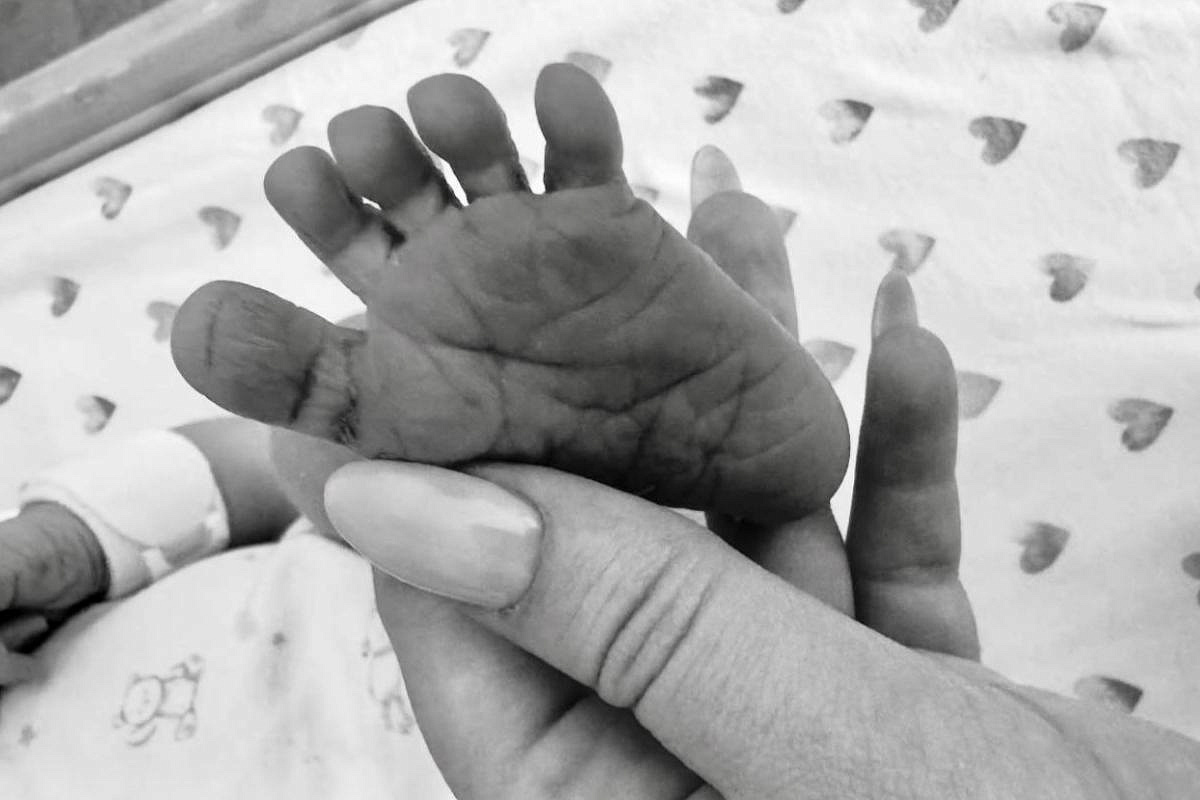 Первые фотографии новорождённого были опубликованы на странице семьи, где показана крошечная ладошка, зажатая в руке матери. На другом снимке —
