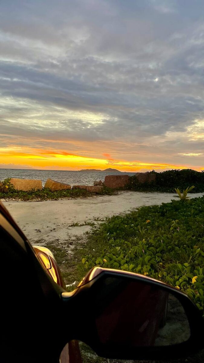 🌅 Я и мой новый друг ( красная Kia Picanta), потому что я не смогла купить проездной на автобус 😖, это оказалось совсем не просто, провожаем очередной красивый закат 😌. 📍остров Праслин 🇸🇨 #Сейшелы