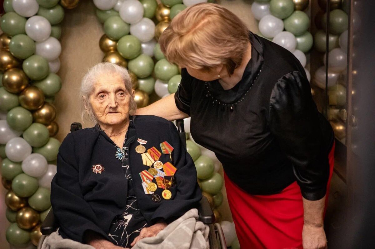 Как сообщила дочь именинницы, во время Великой Отечественной войны она была санитаркой, выносила раненых и вывозила их на санитарном поезде, куда была зачислена вместе со своей старшей сестрой.