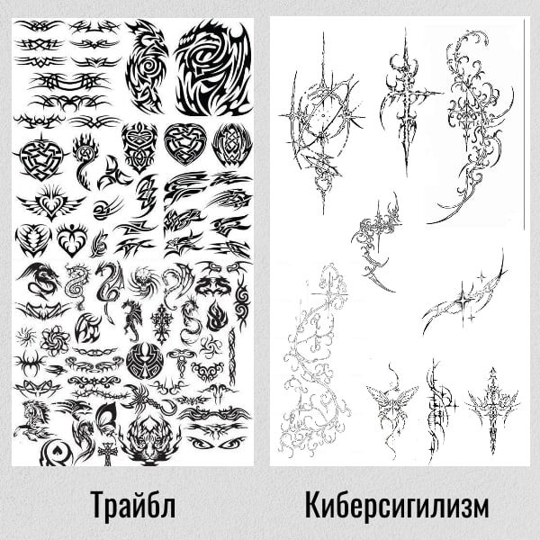 Но вот как они называются — киберсигилизм — знают далеко не все. Многие путают его с трайблом. Ну, потому что на первый взгляд похоже.