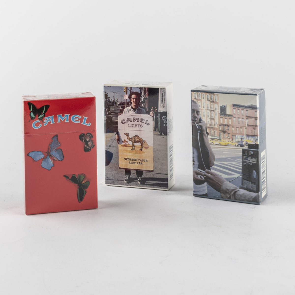 "Work in Progress" - это совместная лимитированная работа Дэмиена Херста, Нан Голдин и Кристофера Чиаппы. Она состоит из цветных сериграфий, напечатанных на трех сигаретных пачках Camel Lights, каждая размером примерно 8,6 x 5,6 x 2,3 см. Этот набор был выпущен в качестве специального издания для художников в сотрудничестве с компанией R.J. Reynolds Tobacco в рамках культурной инициативы Camel "Work In Progress", которая поддерживает передовые работы в области кино, моды, визуального и исполнительского искусства. Работа отличается слиянием современного искусства с коммерческой упаковкой, отражая уникальное пересечение искусства и потребительской культуры. Она была выпущена ограниченным тиражом, и ее копии появлялись на аукционах и в галереях, иногда с оценками около 100-200 фунтов стерлингов или 400-550 евро в зависимости от рынка. В 1999 году они продавались в избранных клубах Нью-Йорка и Чикаго. Acclaimed