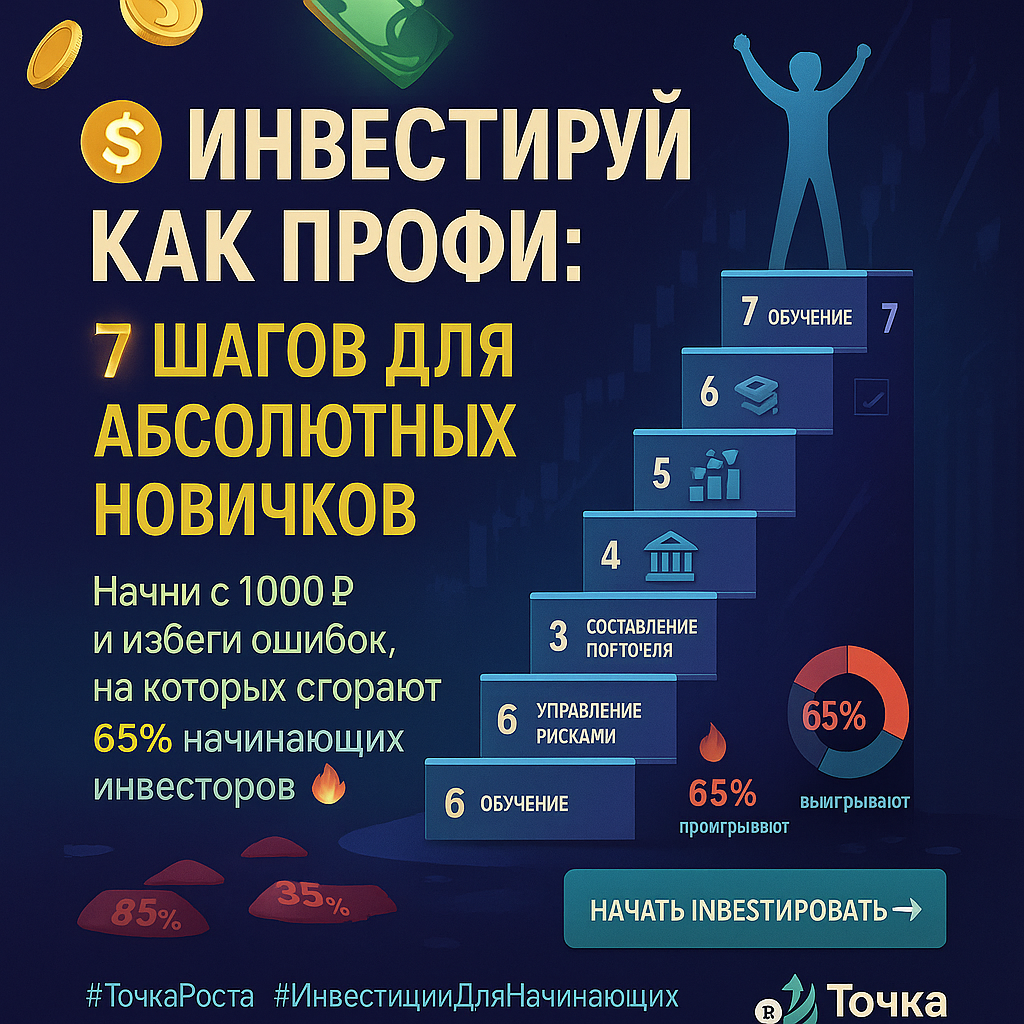 Думаете, что инвестиции — это только для богатых или финансовых гениев? Ошибаетесь! Более 70% людей, которые сейчас успешно инвестируют, начинали с суммы меньше 10 000 рублей. Но при этом 65% новичков теряют деньги в первый год. Почему? Потому что прыгают в омут с головой без базовых знаний. Я прошел этот путь сам и готов показать вам, как избежать ловушек и не слить свой первый капитал на "горячих советах" из Telegram-каналов.