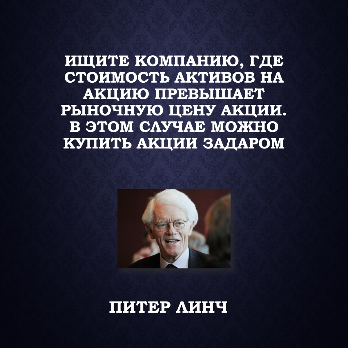 «Ищите компанию, где стоимость активов на акцию превышает рыночную цену акции. В этом случае можно купить акции задаром».⠀ Питер Линч – американский финансист и инвестор, руководил крупнейшим в мире инвестиционным фондом Magellan Fidelity.⠀ Речь идет о мультипликаторе P/BV. Если его значение находится в диапазоне от 0 до 1, это значит, что стоимость активов на акцию превышает рыночную цену акции. Если значение мультипликатора отрицательное, это значит, что компания работает полностью на заемном капитале. В этом случае значение показателя не имеет смысла. Но инвестору становится понятно, что долгов у компании больше, чем собственного капитала, а это повышенные риски. 👍 Примеры недооцененных акций РФ по P/BV: ▪️Лукойл 0,68 ▪️Роснефть 0,53 ▪️Совкомфлот 0,41 👎 Примеры дорогих компаний, исходя из P/BV: ▪️ВсеИнструменты.ру 26,8 ▪️Лензолото 44,3 ▪️Арсагера 5,8 Стоит отметить, что далеко не все компании можно оценивать по P/BV. Так, например, мультипликатор не подойдет для оценки IT-компаний