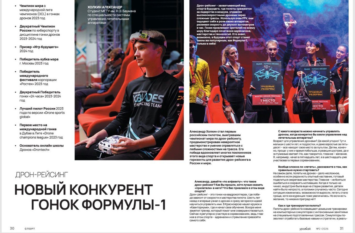 😁😉 Наш преподаватель Александр Холкин дал интервью для глянца "Урожай" в разделе спорт. Познакомил читателей с Дронрейсингом. Рассказал что это за вид спорта, чем он интересен, какие трудности приходится преодолевать на соревнованиях и поговорил о перспективах данного вида спорта. https://t.me/harvestrussia #сми