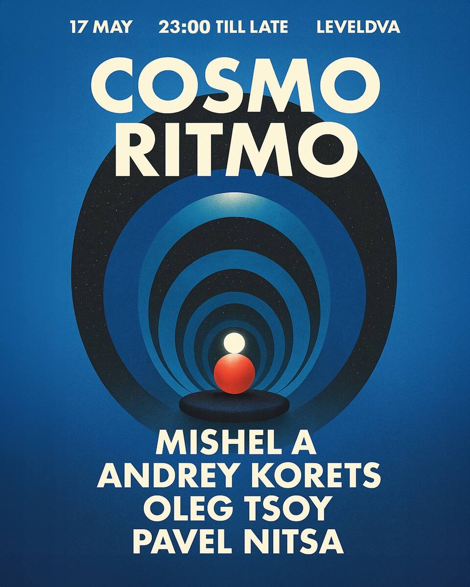 COSMO RITMO в Leveldva 17 мая Пока летние дворы ждут своего часа, в ламповый дарк-рум бара Leveldva на Никитской возвращается серия вечеринок Cosmo Ritmo. В программе slow-house, электроника и эдиты от резидентов и фаундеров проекта Soma: Mishel A, Andrey Korets, Oleg Tsoy и Pavel Nitsa. 🎫 Билеты от 1000 FC/DC, 21+ 📆 17 мая, в 23.00 📍 Leveldva Izakaya, Москва, Большая Никитская ул., 12