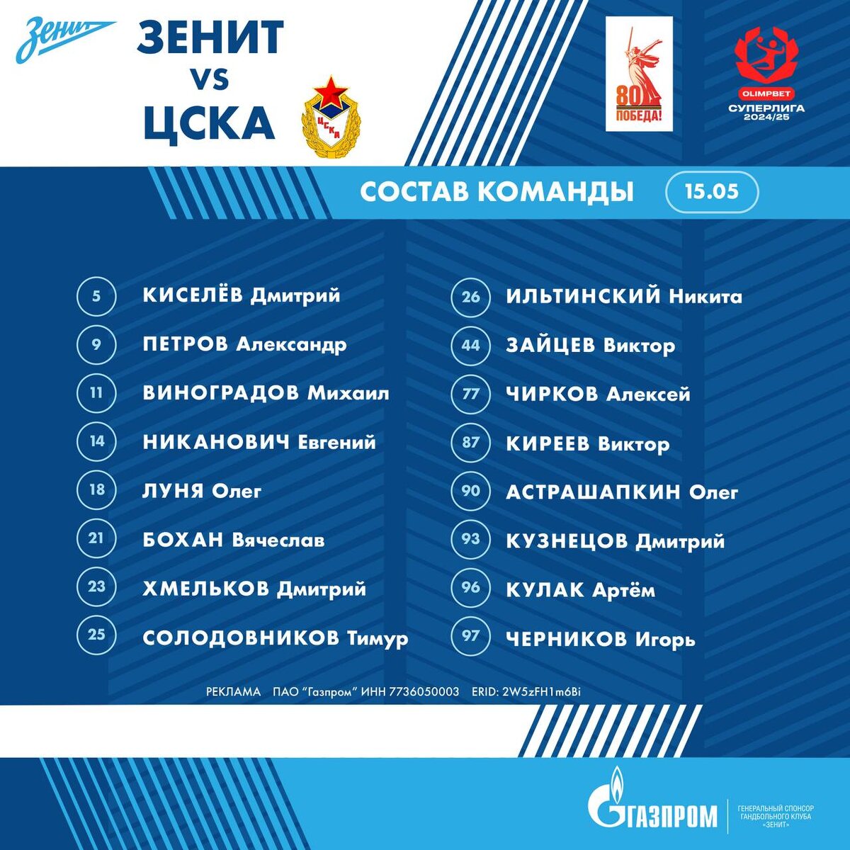 сегодня вечером, уже в 19:30 по москве состоится первая игра финала суперлиги по гандболу! сражение планируется безумно интересным и зрелищным, давайте оценим гипотетические шансы на победу Зенита. во-первых, за зенит говорит длинна скамейки. у петербуржцев по два исполнителя на каждую позицию, а у ЦСКА с ротацией проблемы. во вратарской дуэли зенит тоже однозначно в выигрыше, так как за петербуржцев выступает лучший вратарь лиги, в плей-офф выдающий перфоманс за перфомансом за ЦСКА же говорит опыт, как команды, так и личностей ожидается огненная борьба, громкие заряды от виража и прекрасная игра!