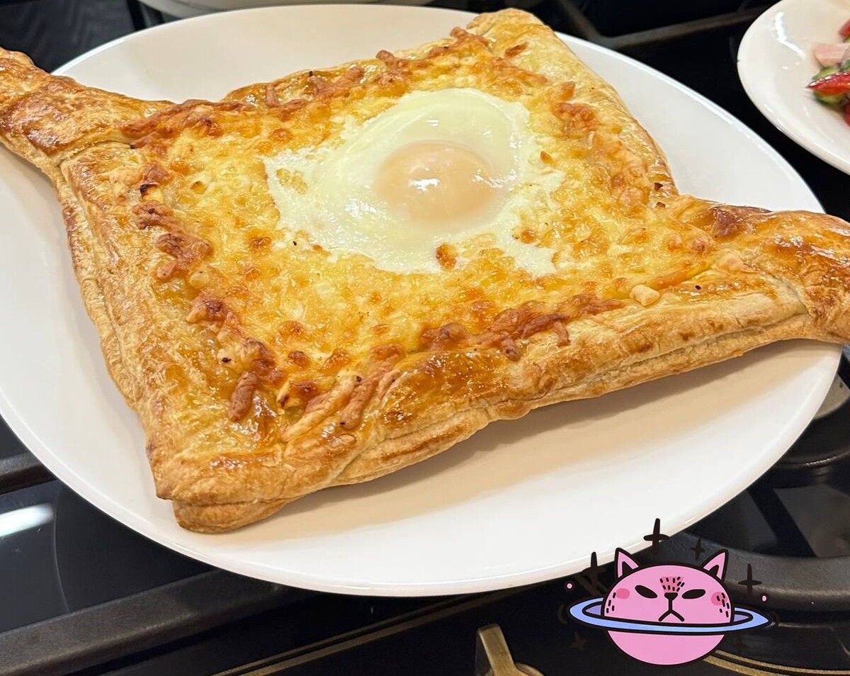 Привет! Сегодня поделюсь рецептом ленивого хачапури по-аджарски. Это вкусное, сытное и красивое блюдо, которое нравится всем — и взрослым, и детям. Тесто для него можно купить в магазине, но я предпочитаю готовить сама, поэтому достаю его из морозилки, размораживаю и начинаю творить. **Ингредиенты на 2 хачапури:** - Тесто — 500 г (готовое, слоёное бездрожжевое); - Начинка: творог — 100 г, сыр — 200 г, яйца — 3 шт. (2 для начинки и 1 для смазывания). 1. Разморозьте тесто. 2. Раскатывать его не нужно. Сделайте надрезы, придайте форму, смажьте бортики желтком и отправьте в разогретую до 200 градусов духовку на 10 минут. 3. По истечении времени достаньте хачапури, положите сырную начинку и верните в духовку ещё на 8–10 минут, пока не появится румяная корочка. 4. Снова достаньте, сделайте вилкой углубление, влейте яйцо и отправьте в духовку на 1–2 минуты. Приятного аппетита!