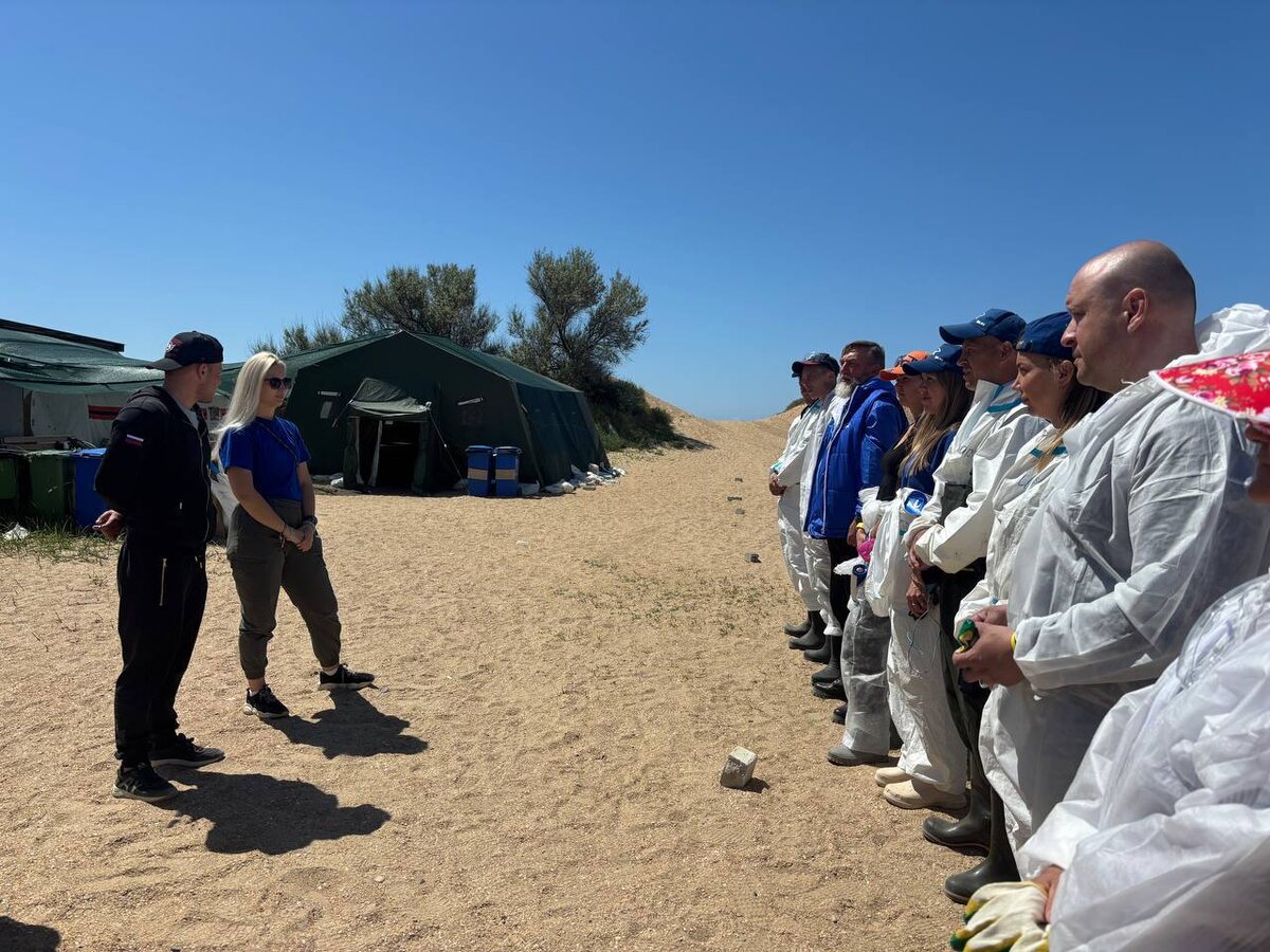 В волонтёрском лагере «Черноморский рубеж» под Анапой стартовала восьмая смена В очередной смене принимают участие 7 команд в составе 200 добровольцев из Калужской, Пензенской, Ивановской и Вологодской областей, Москвы, Республики Марий Эл и Краснодарского края. -Впереди у волонтёров двухнедельный марафон по очистке пляжей особо охраняемой природной территории Бугазской косы от мазута. Будет интересно и среди «рыбаков», и среди «художников», и среди «заготовщиков». Работы много, она разная, но это время совершенно точно запомнится,-отметил уполномоченный по работе волонтерских групп партии «Единая Россия» в зонах ЧС Игорь Кастюкевич. По итогам седьмой смены команды «Черноморского рубежа» вместе с МЧС, добровольцами из анапских групп «Сети, сито, лопата» и «птичники» при поддержке спецтехники «Кубань-СПАС» убрали с побережья в районе станице Благовещенской около 300 тонн загрязнённого нефтепродуктами грунта. Кроме того, волонтёры установили 825 метров защитных сетей. #НовостиАнапыСегод