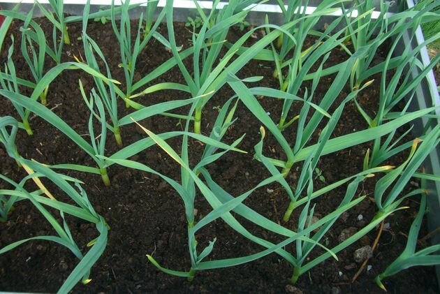 Шильца озимого чеснока выходят на поверхность ещё в апреле, но наиболее интенсивно развитие его надземной системы происходит в мае. Чем более обильным сформируется листовой аппарат растений, тем выше будет урожайность чеснока. Земля за прошедшие после посадки месяцы максимально уплотнилась, и корни чеснока после дождей могут серьёзно страдать от удушья. Поэтому междурядья на грядах с чесноком необходимо регулярно глубоко рыхлить. После рыхления в рядки вносят по 20–25 г на 1 кв. м аммиачной селитры, чтобы обеспечить посадки азотом, необходимым чесноку для быстрого увеличения объёма зелёной массы. Чеснок, а также репчатый лук нуждается в высокой обеспеченности доступными соединениями серы. При недостатке серы снижается лёжкость урожая этих культур. На торфянистых и подзолистых почвах этот элемент всегда в дефиците. Здесь целесообразно в качестве азотной подкормки вместо аммиачной селитры использовать сульфат аммония, внося его по 30 г на 1 кв. м. В сухую погоду сразу после внесения азот
